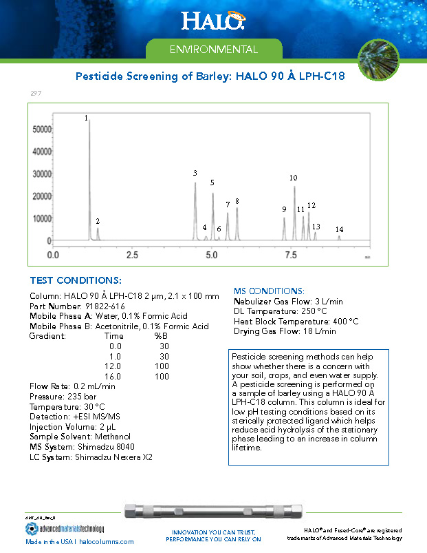 Pesticide Screening of Barley: HALO 90 Å LPH-C18